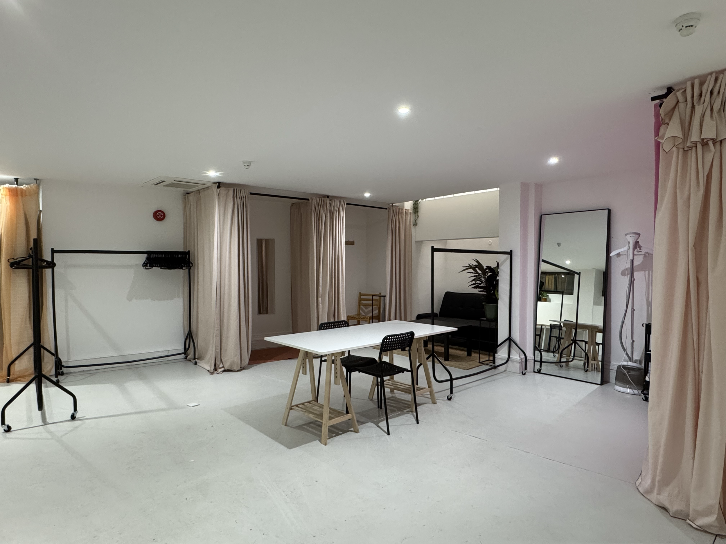 Fully fitted with rails, mirrors, steamer, changing area and a work desk. Half days from £180. Full days £350.